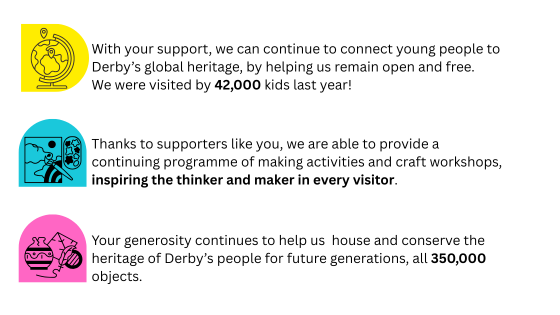 We want to thank you for your continued support of Derby Museums and ask that you consider the gift ideas we have below. We truly value you support, helping us to continue championing Derby’s cultural heritage.