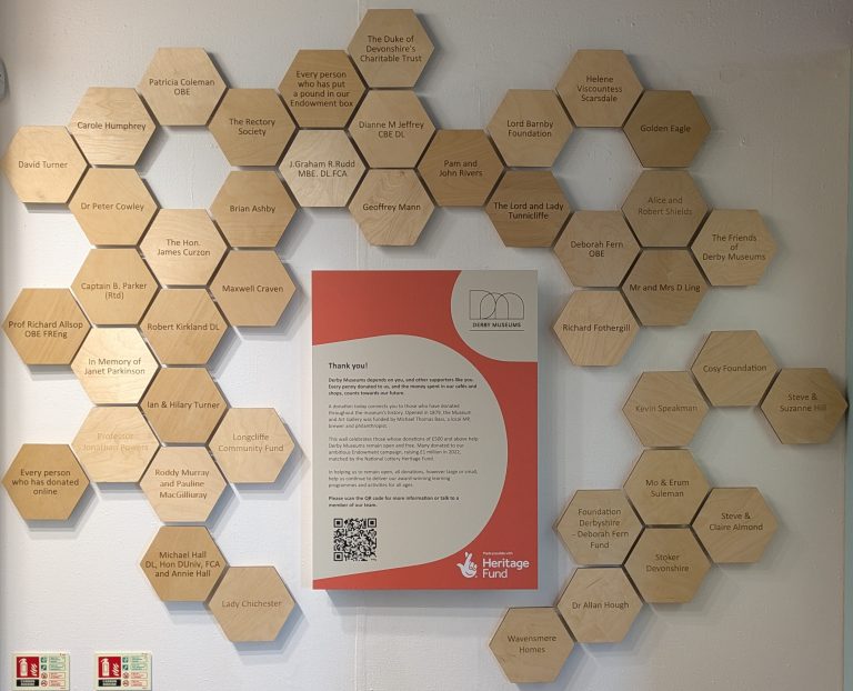Celebrate your commitment to culture and support for our work, with the opportunity to feature on our Giving Wall display at the Museum and Art Gallery. This is an ideal way to remember a loved one, celebrate a special occasion or simply show your support for Derby Museums.